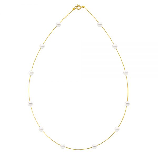 A wonderful necklace tied with special steel wire with 12 white Fresh Water Pearl pearls with a diameter of 4.5 mm, of excellent quality with a 14 carat gold clasp. Its total length is 42 cm.