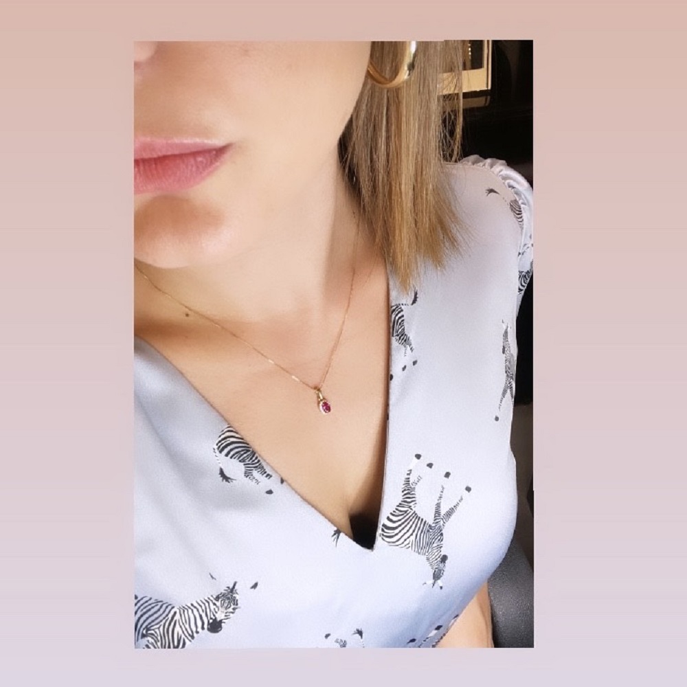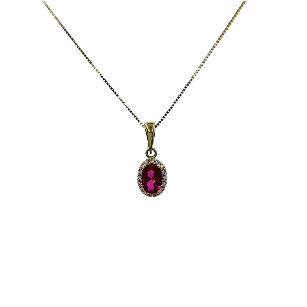 Ένα υπέροχο κολιέ ροζέτα από χρυσό 14 καρατίων με κόκκινο ζιργκόν.