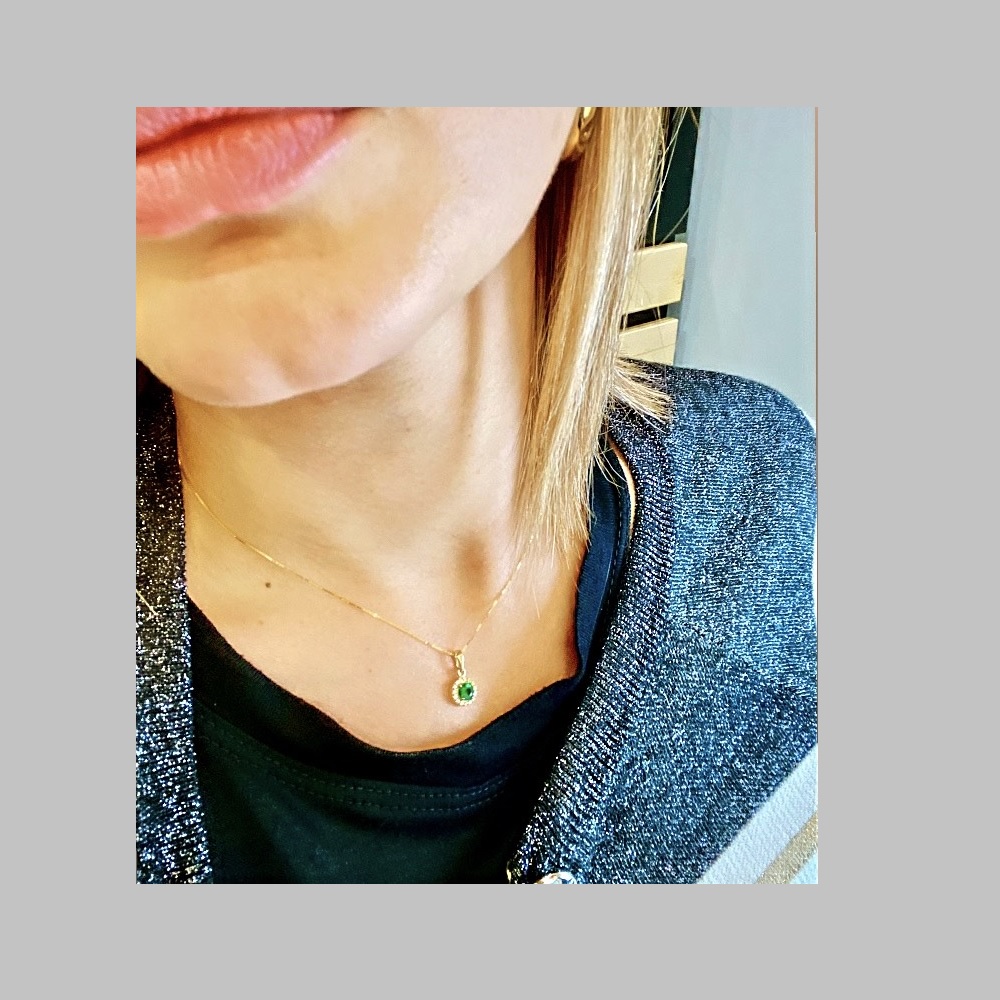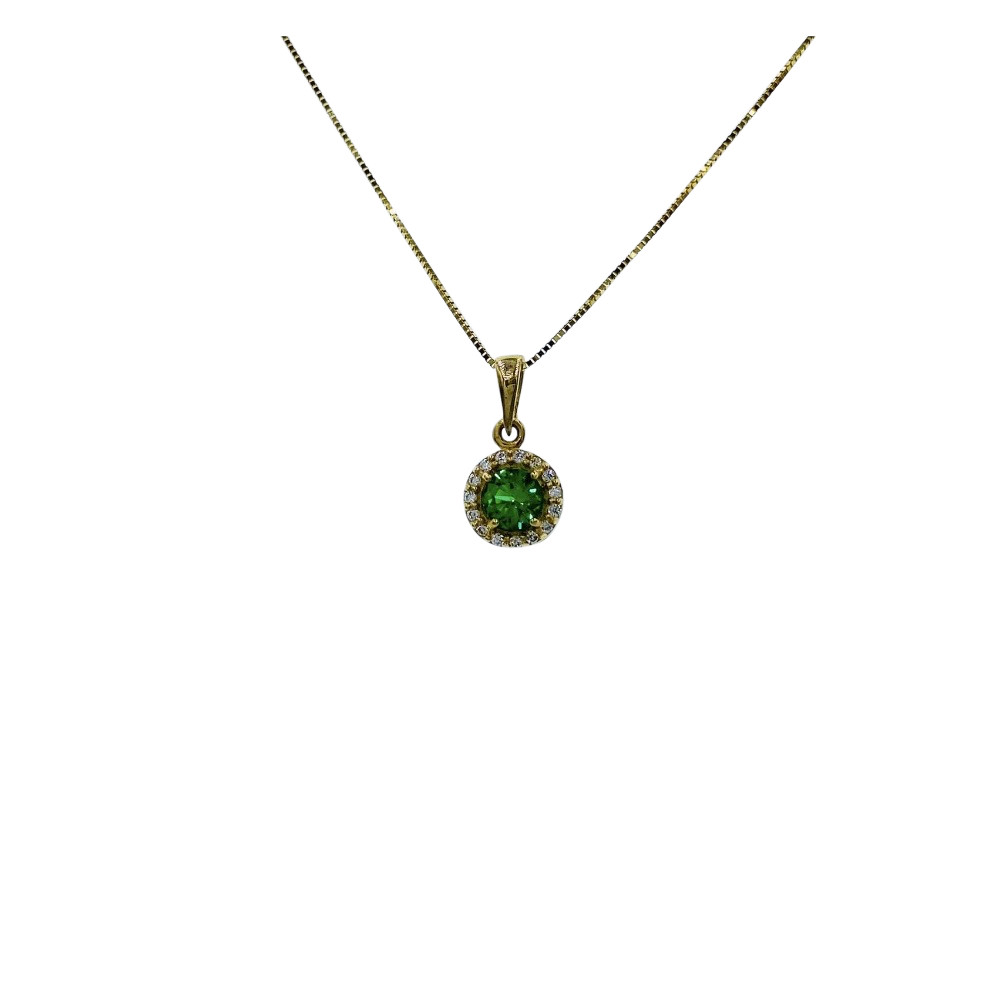 KOL0008Ένα υπέροχο κολιέ ροζέτα από χρυσό 14 καρατίων με πράσινο ζιργκόν.