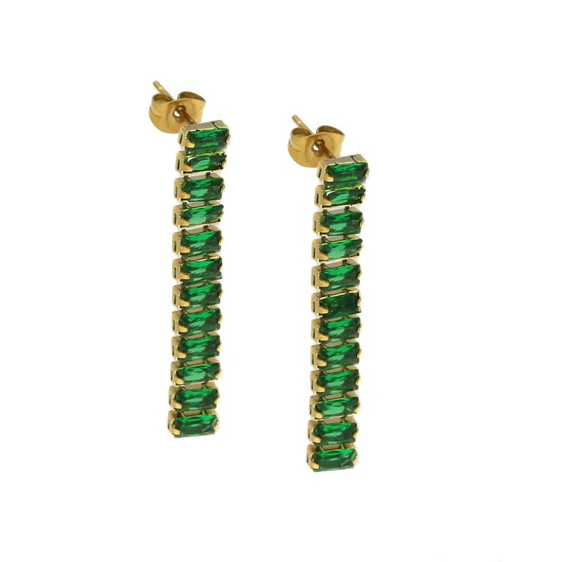Σκουλαρίκια μακριά με εντυπωσιακές πράσινες πέτρες από ατσάλι 100% αδιάβροχο και υποαλλεργικό.